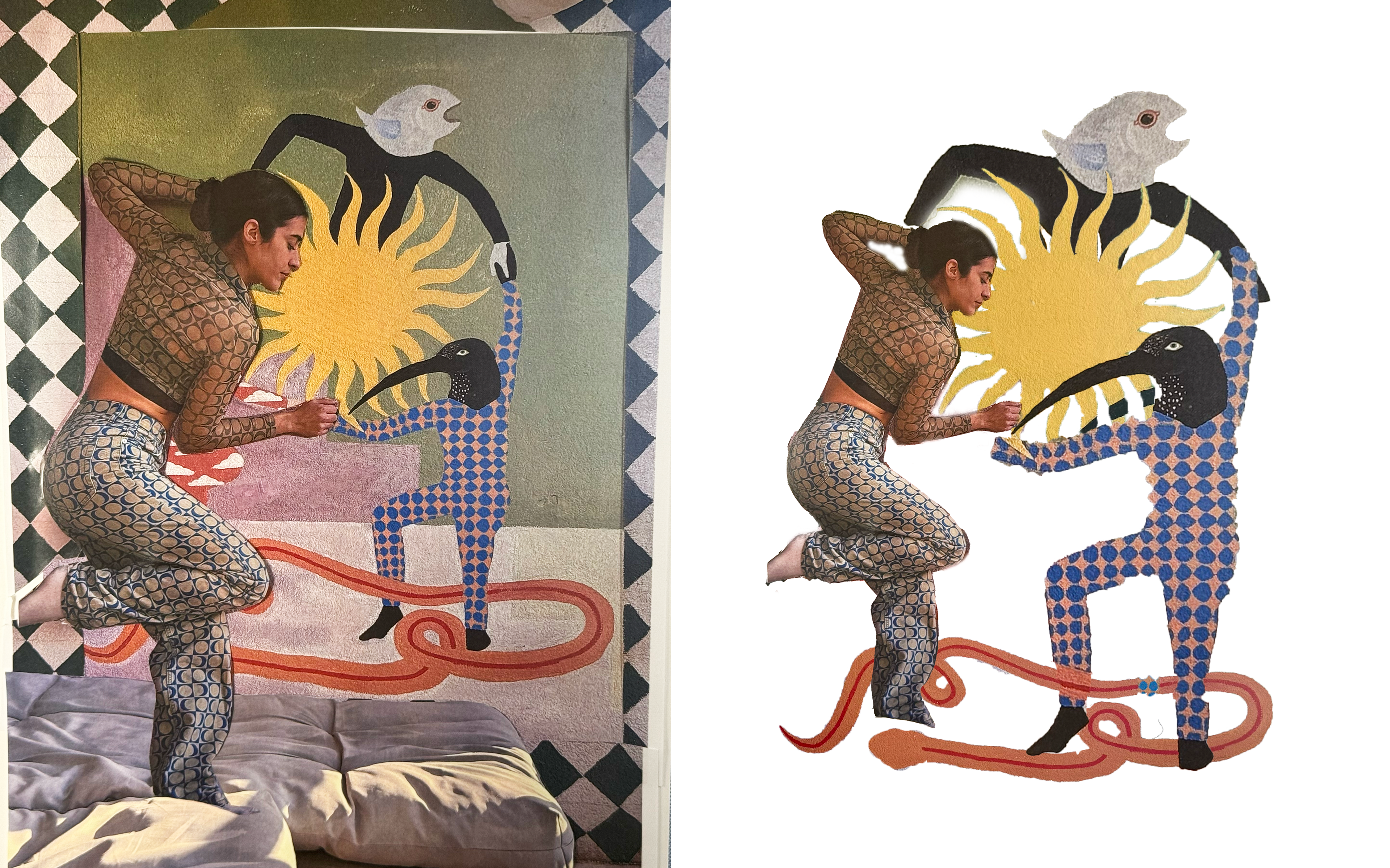 Each image was first photographed, then fragmented and reassembled into a collage, mirroring how a home is built from personal layers and lived moments.