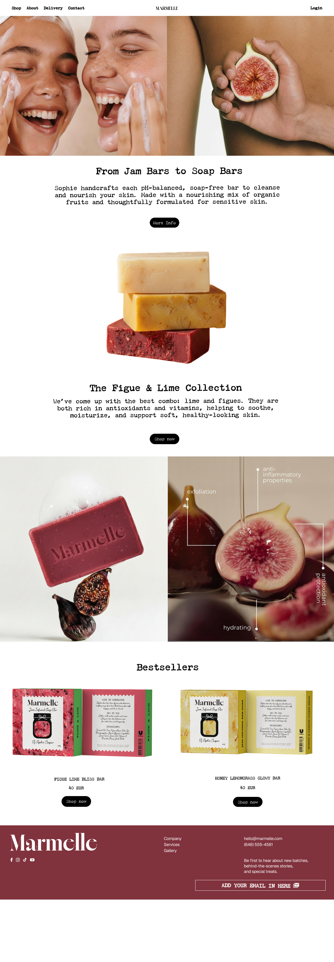 Packaging design for Marmelle, a handmade soap brand by jam maker Sophie Cooper, developed for a new range of soaps made from natural jam and the brand’s entry into e-commerce.